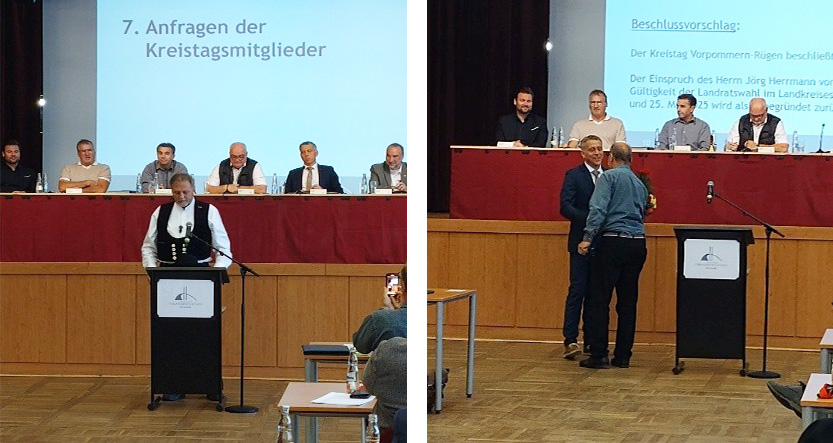 Nicht zuletzt möchten wir dem alten und neuen Landrat für Vorpommern-Rügen zur offiziellen Ernennung in der gestrigen Kreistagssitzung gratulieren. Wir wünschen ihm viel Erfolg für seine Arbeit.